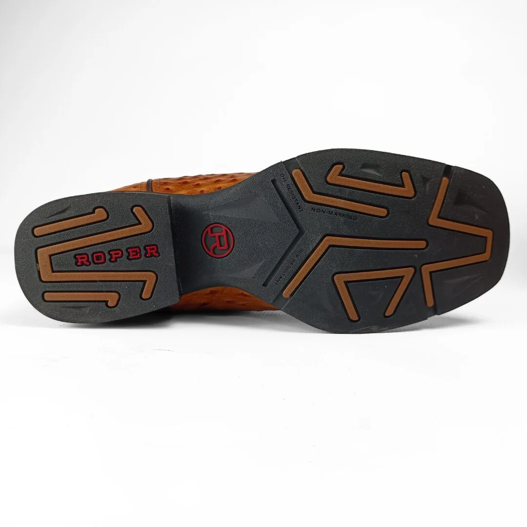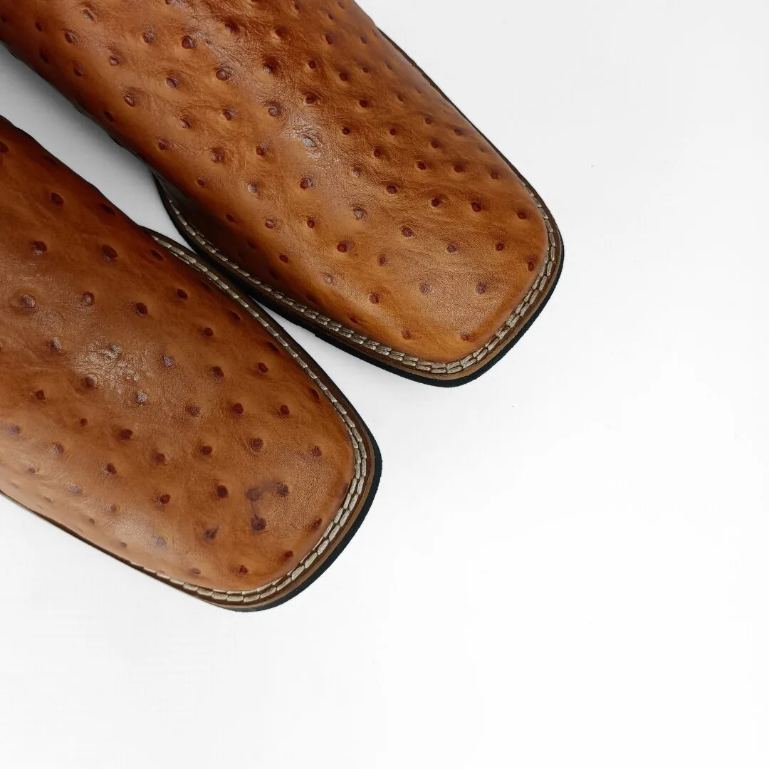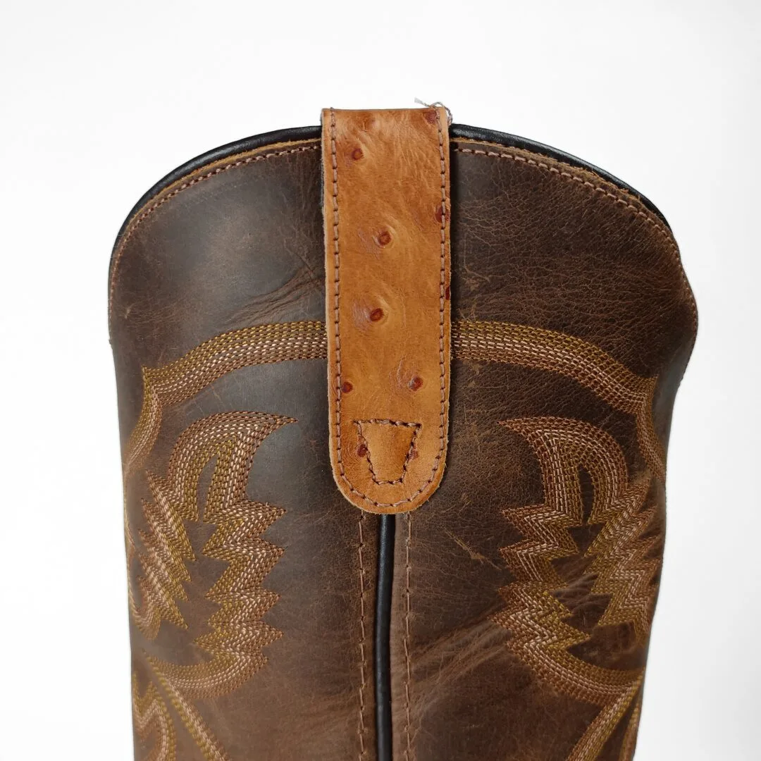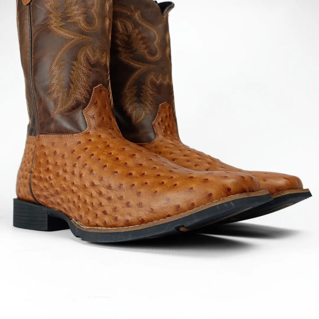 The Garza Men’s Western Boots combine exotic-inspired style with everyday comfort. Built with a tan ostrich-embossed leather vamp and a brown leather shaft, these boots stand out with their unique texture and bold western appeal. Featuring a wide square toe, feather western stitch design, and 12-inch shaft, they deliver a look that is both rugged and refined.