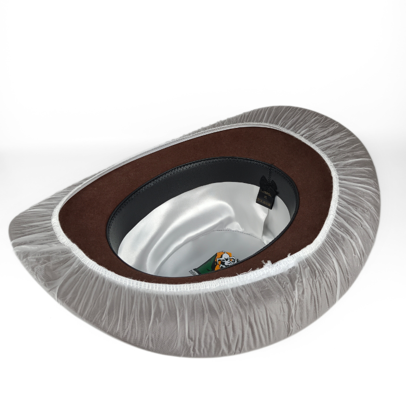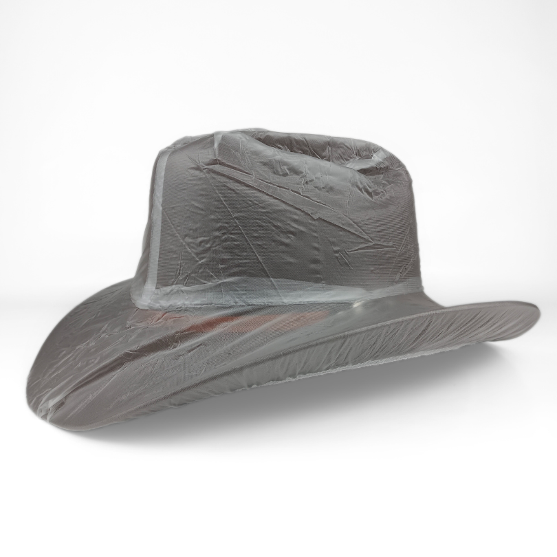 For the cowboys who are not afraid of a little rain, but do want to protect their hat from getting soaking wet. Of coarse your hat can get wet, but it is never a great idea to get them soaking repeatedly, as this will damage your hat and have it loosing it’s luster over time. This is a rain cover for your western / outdoor hat. This cover is made from a durable vinyl and has an elastic on the outer edge to perfectly fit and protect your hat.
